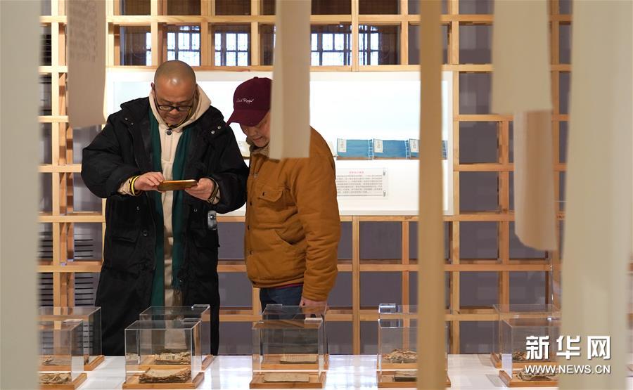 12月26日,在四川省洛带艺匠古籍文献修复博物馆,两名参观者在拍摄修复好的古籍文献。新华社发(王曦 摄)